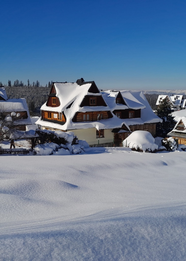 przytulnego, drewnianego domu w góralskim klimacie w cichej okolicy z pięknymi widokami na Tatry.